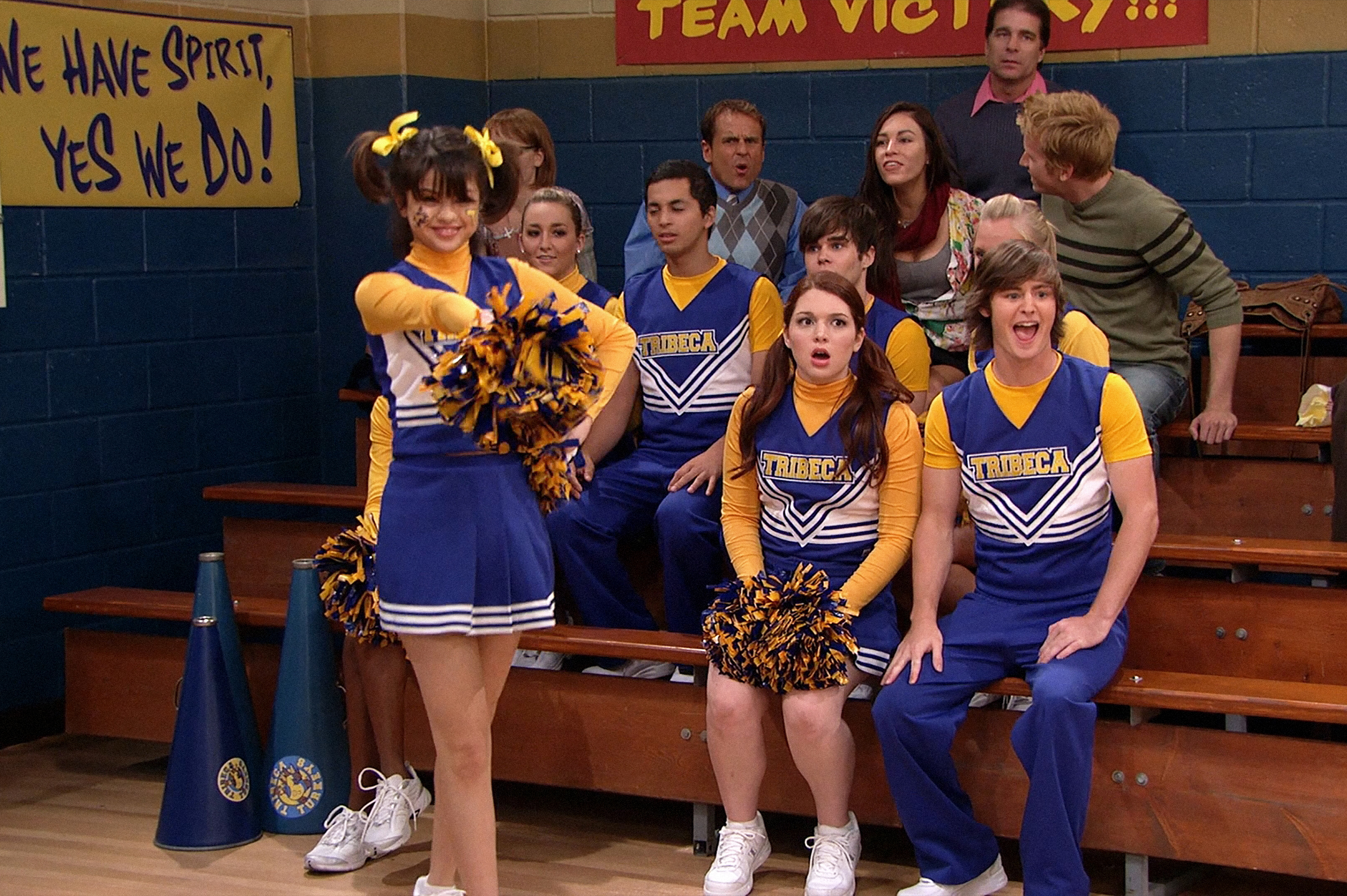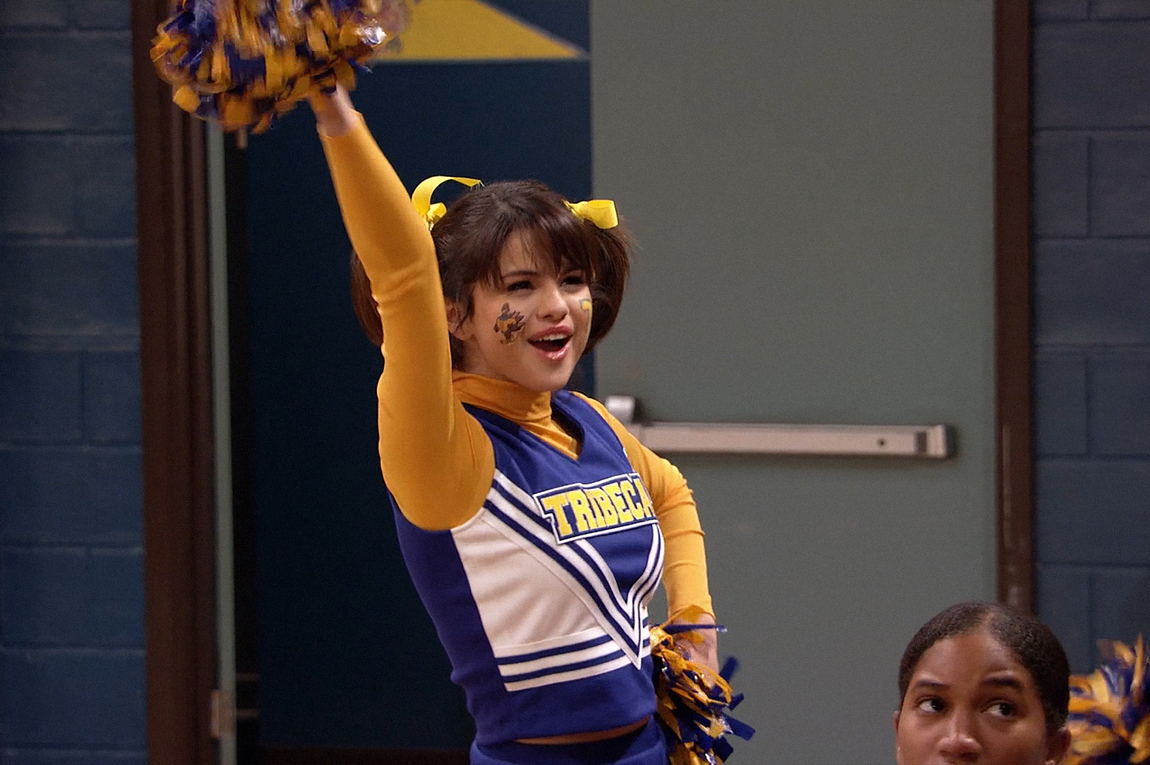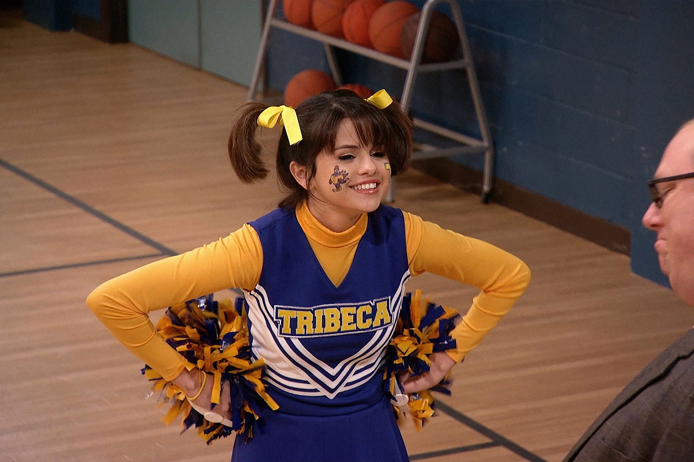 Check out new HQ pics with Selena Gomez posing in her Tribeca Turkeys cheer uniform on set of the ‘Positive Alex’ episode of the 3rd season of Wizards Of Waverly Place.
